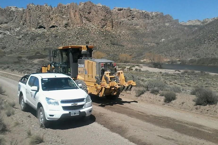 Vialidad Rionegrina ejecuta con equipamiento pesado propio, tareas viales de repaso y acondicionamiento de calzada sobre el camino vecinal que vincula a los parajes de Villa Llanquín y Pichi Leufu, en la zona cordillerana de la Provincia.