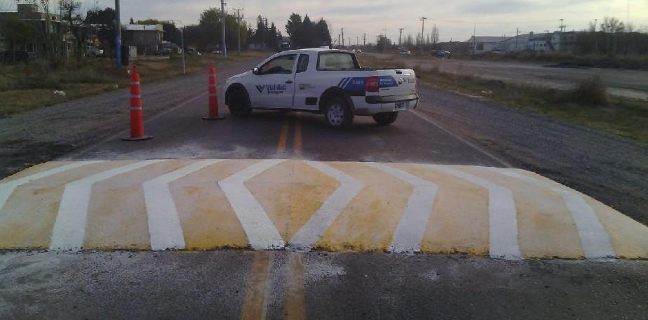 La Dirección de Vialidad Rionegrina colocó cartelería y construyó dos reductores de velocidad con material asfáltico, emplazados sobre la Ruta Provincial N° 65, denominada "Ruta Chica", a la altura de la estación del ferrocarril de Fernández Oro.