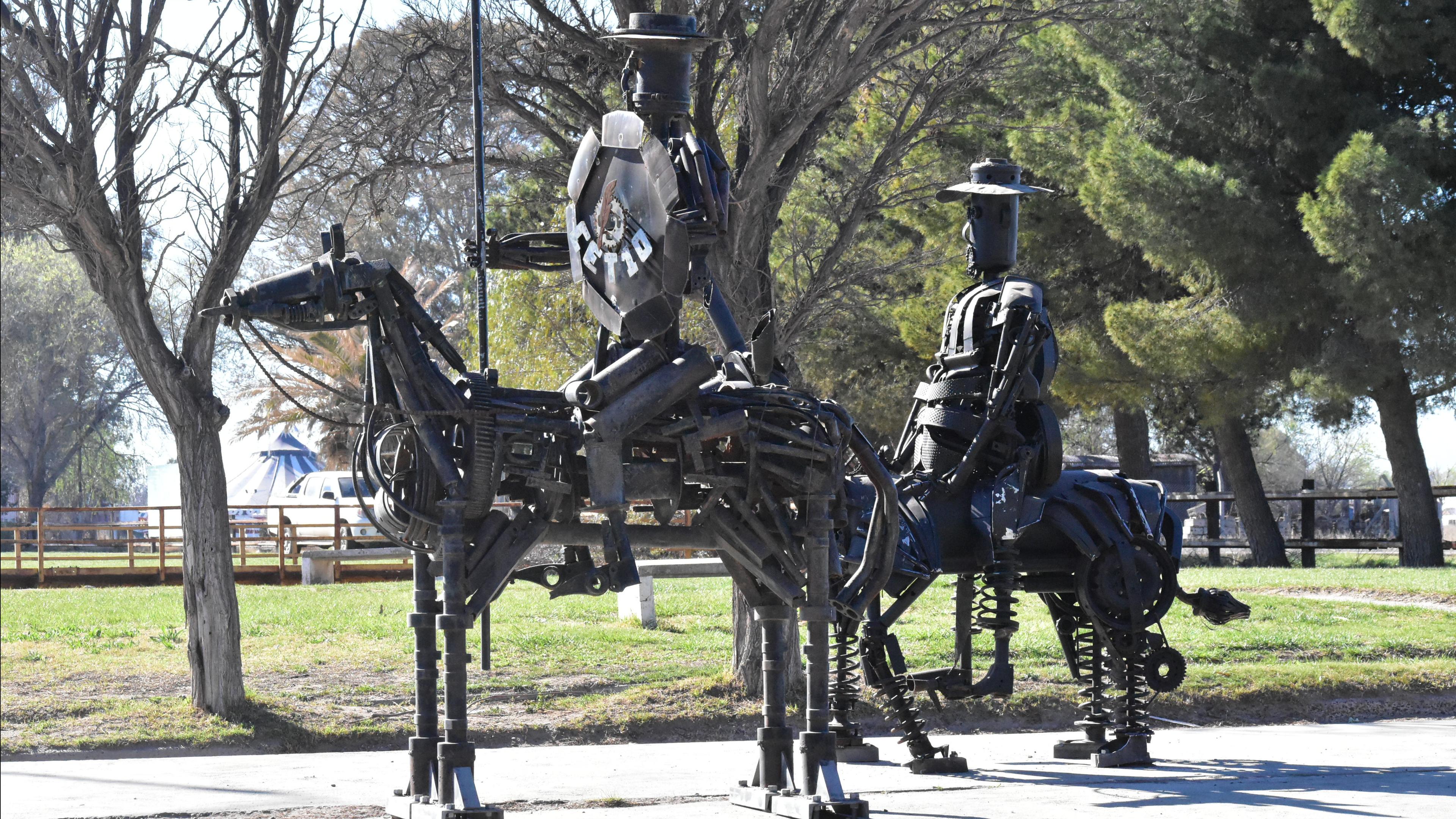 Estudiantes del CET 10 de Río Colorado construyeron esculturas de Don Quijote de la Mancha y Sancho Panza, en tamaño real y con materiales reciclados, con el objetivo de embellecer la rotonda céntrica de la localidad. La propuesta tendrá una nueva etapa en donde elaborarán molinos de viento.