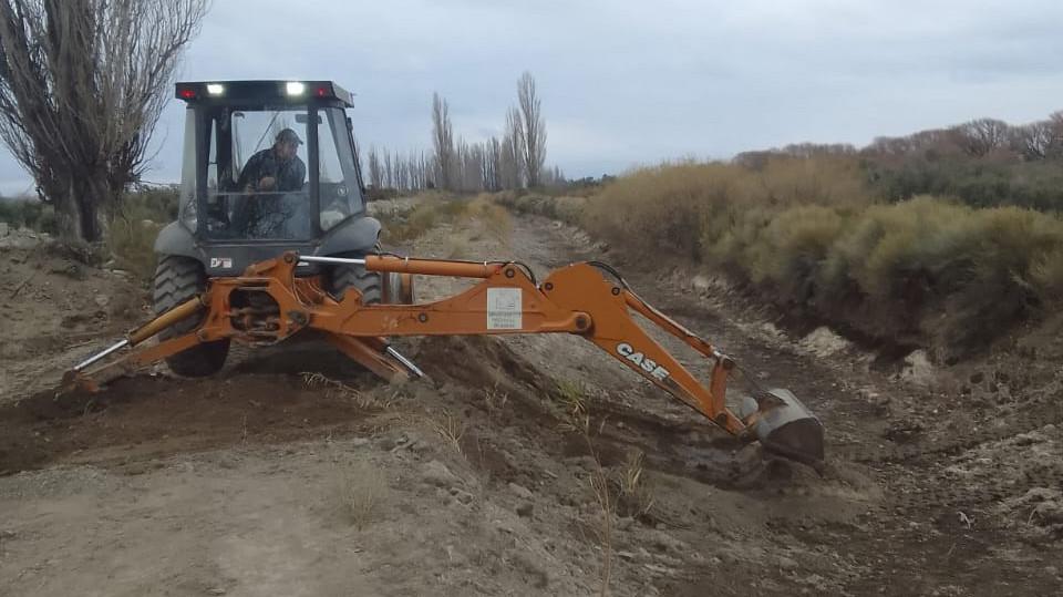 Como parte de trabajos de rutina, operarios del Departamento Provincial de Aguas (DPA) de Valcheta se encuentran realizando tareas de mejoras en el sistema de riego.